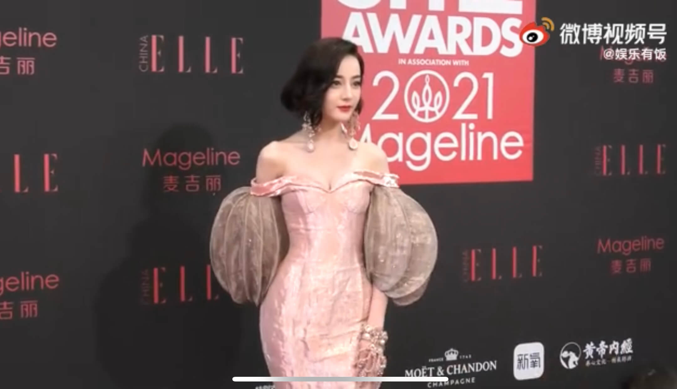 迪麗熱巴於18日盛裝出席ELLE風尚大典,以玫瑰粉色為主題,平口低胸顯露傲人事業線,延著裙擺邊緣刺繡著花樣,配戴浮誇的耳環與手飾,整套禮服最引人矚目的就是那浮誇燈籠袖,因為特別的設計緣故,讓她無法正常把手舉起,裙擺沈重到只能小步前進,邊走邊直呼「大家多看一會兒」、「不好意思,走得有點慢」,俏皮模樣逗樂全場。