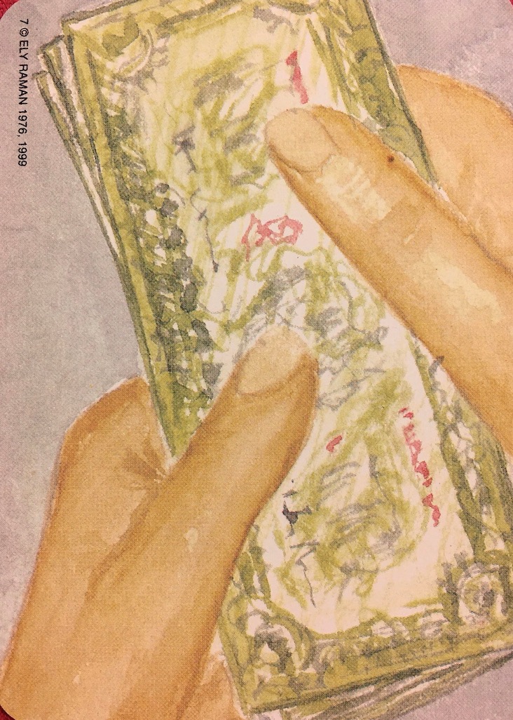 真心話:請誠實的回答:「你目前的存款有多少?」「債務又有多少?」「你現在賺的錢,是你滿足的數字嗎?」「2022年你的年收入目標數字是多少?」「如果你中了彩券頭獎,你會怎麼使用這筆錢?」選到這張牌是在提醒你,你的潛意識對於金錢很在意,有可能是擔心錢不夠用,或者很介意自己的價值,金錢/財富牽動了你的安全感,然而,錢要多少才夠?這個問題因人而異,重要的是覺察自己對金錢的看法,讓擔憂恐懼轉化為相信自己能創造豐盛。