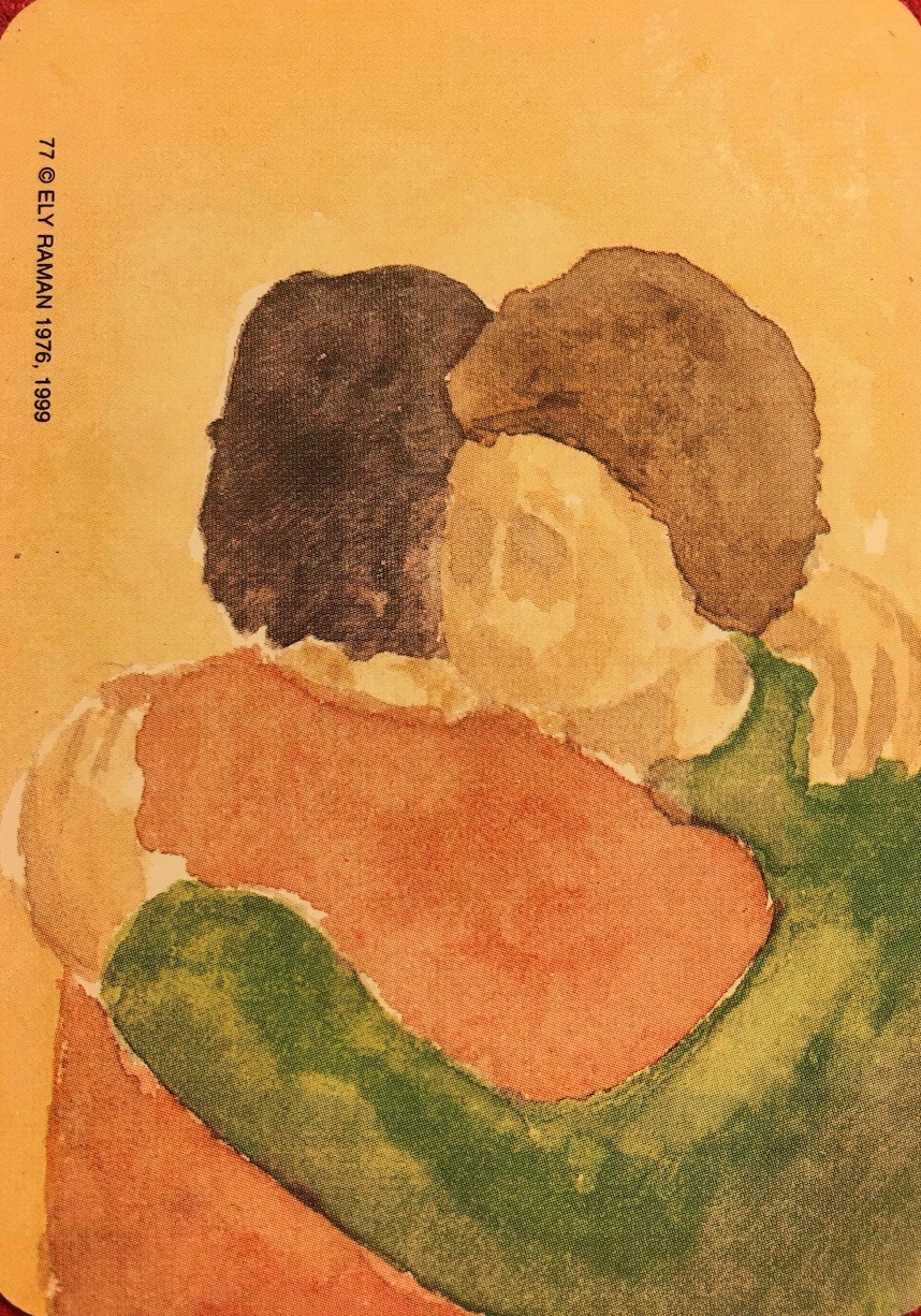 真心話:請誠實的回答:「如果不用考慮是否可行,你現在最想擁抱誰?」「你有多久沒擁抱別人了?」「你想安慰誰?又想跟誰道歉?還是想跟誰表白?」「上一個擁抱你的人是誰?」「你又有多久沒有擁抱自己了?」選到這張牌是在提醒你,你的潛意識很在乎關係,包括親情、友情、愛情等,這些人際關係議題正大量佔據你的心與腦容量,叫囂著要你正視,如果有忘不了的人、放不下的情、未出口的話,請去圓滿這件事,給彼此一個擁抱吧!