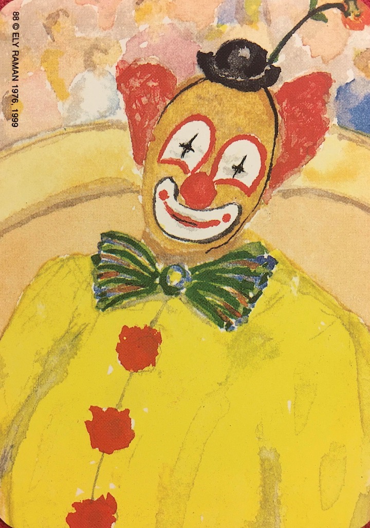 真心話:請誠實的回答:「生活中,你是否曾經扮演丑角,強顏歡笑?」「誰讓你覺得滑稽可笑,宛如小丑?」「你在團體中是扮演開心果的角色嗎?」「你看到這個小丑臉上在笑,但他的真實心情會是什麼?」「想到小丑,你會聯想到什麼感受?」選到這張牌,代表你的潛意識要你掀開面具或偽裝,直視真實心聲,是什麼事件或什麼人,讓你有了丑角般的感受,是戲如人生?還是人生如戲?小丑面具之下是哭是笑,只有你知道,而你願意重視感受嗎?