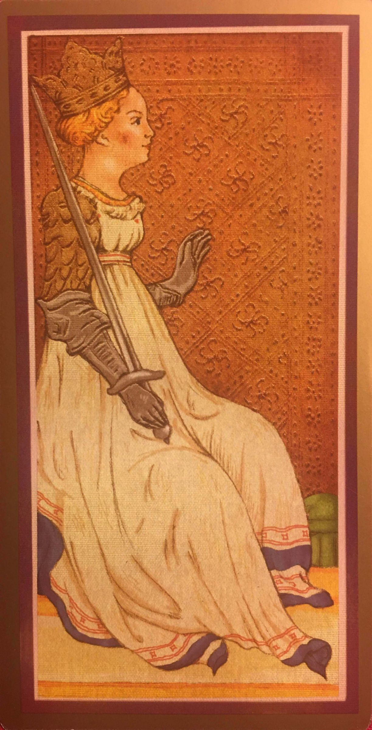 抽到這張牌,代表你2022農曆年前財運發展的關鍵在於保持冷靜與維持紀律,特別要留意「內在感知與洞察力的提醒」,以及「看數據決策,當斷則斷」。農曆年前你的財務狀態算是相當穩定的,雖然外在環境仍有些風險和威脅,如同寶劍皇后前手臂和手肘都戴上手套與盔甲保護自己,右手也握著一把劍,但她神情輕鬆、彷彿勝券在握,身穿純潔的白衣,象徵思緒清晰、靈巧聰明,只要繼續保持這樣的狀態,就能自給自足,擁有足夠抵擋外界風險的富裕。