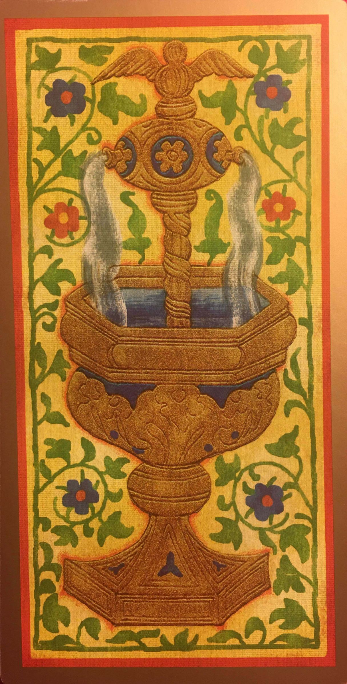 抽到這張牌,代表你2022農曆年前財運發展的關鍵在於敞開心扉、分享喜悅,就能迎來富裕豐盛、成就感和滿足感,以及擋不住的好運!農曆年前你的財務狀態跟你的好人緣成正比,牌面上的杯子是一個六角形的噴泉,類似洗禮盆或者聖餐杯,也就是眾所周知的聖杯。聖杯一為你帶來了靈感創意及投資的好運,提醒你把握時機,慷慨的分享你所擁有的一切美好,你就能收獲源源不絕的信任、幸運、豐盛,有任何靈感、投資、合作機會,就付諸行動吧!