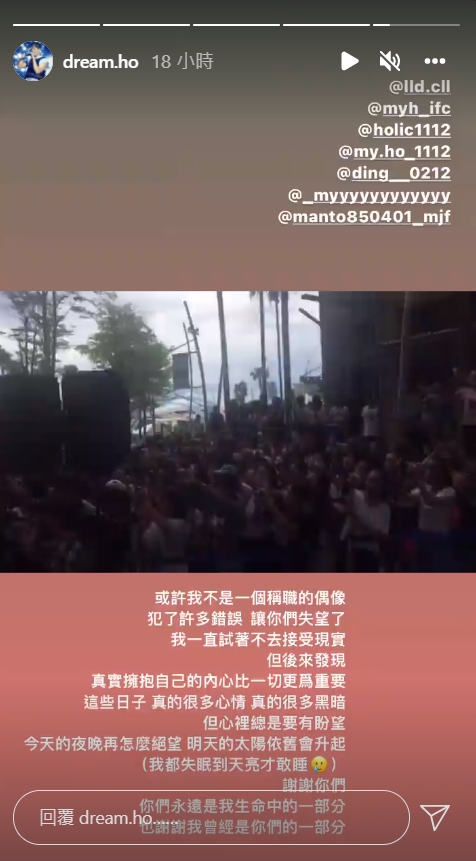 此外,何孟遠還曬出過去在男團「TOP1男子漢」跑活動時的影片,感嘆時光飛逝,當年還是小女孩的粉絲,現在那些粉絲們都要結婚了,他也標記了多位鐵粉的帳號,跟粉絲們隔空告白說,「或許我不是一個稱職的偶像,犯了許多錯誤,讓你們失望了!」