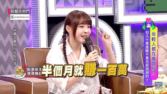 女星元元從《國光幫幫忙之大哥是對的》中出道,隨後便經常在各大綜藝節目中可以看見她的身影,而她最近在《綜藝大熱門》中暢談股票投資一事,身為投資新手的她,透露自己十分幸運,才進場半個月就「大賺100萬」,還因為賺太多,所以有一段時間沒有接通告,讓在場來賓驚呼連連!
