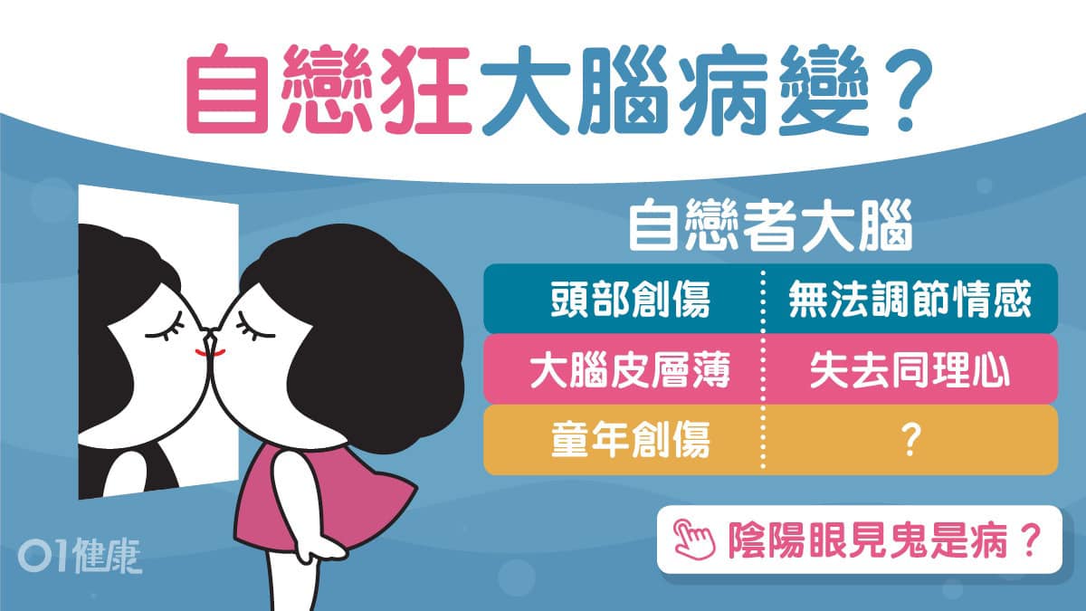 黃軒醫師透露,若病人患有「自戀型人格障礙」,則會自尊心低而且感到自卑,同時也會表現出強烈的「傲慢和虛榮心」!而自戀型人格障礙的生成原因是「患者可能強烈羨慕某些族群,並渴望成為對方,因而把自己偽裝成該族群並想像自己被以相同的方式羨慕」。此外,他也提到,從腦部MRI和CT掃描中可以發現自戀者的大腦結構變化和正常人不同。