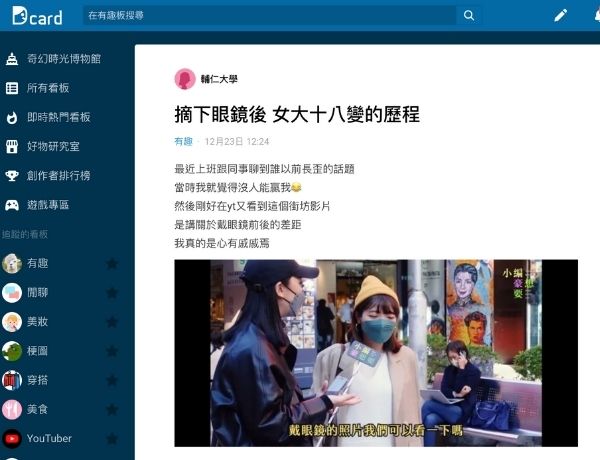 該篇文章寫道,「前陣子跟同事聊到誰以前長歪的話題,當時自信認為沒人能贏過自己,又剛好在YouTube頻道上看到達人秀小編豪想要的街訪影片,頓時心有戚戚焉。」她便決定公開分享自己的「變美實錄」,包含運動減肥、換髮型、開始學化妝、改戴隱形眼鏡等等。