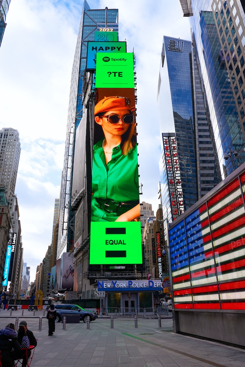 以獨具迷人嗓音擄獲人心的壞特?te去年底推出的全新單曲〈虧欠〉獲得廣大迴響,而壞特?te更以此於昨(19日)登上美國紐約時代廣場的高樓巨型螢幕,而這也是2022年首位榮登Spotify《EQUAL》的封面人物及躍登紐約時代廣場約20層樓高的巨型螢幕看板的女歌手,得知這個好消息的壞特?te忍不住當眾開心尖叫,直呼「超榮幸」之餘更大喊「媽媽」,開心笑說:「媽!我一秒飛到紐約時代廣場啦!」
