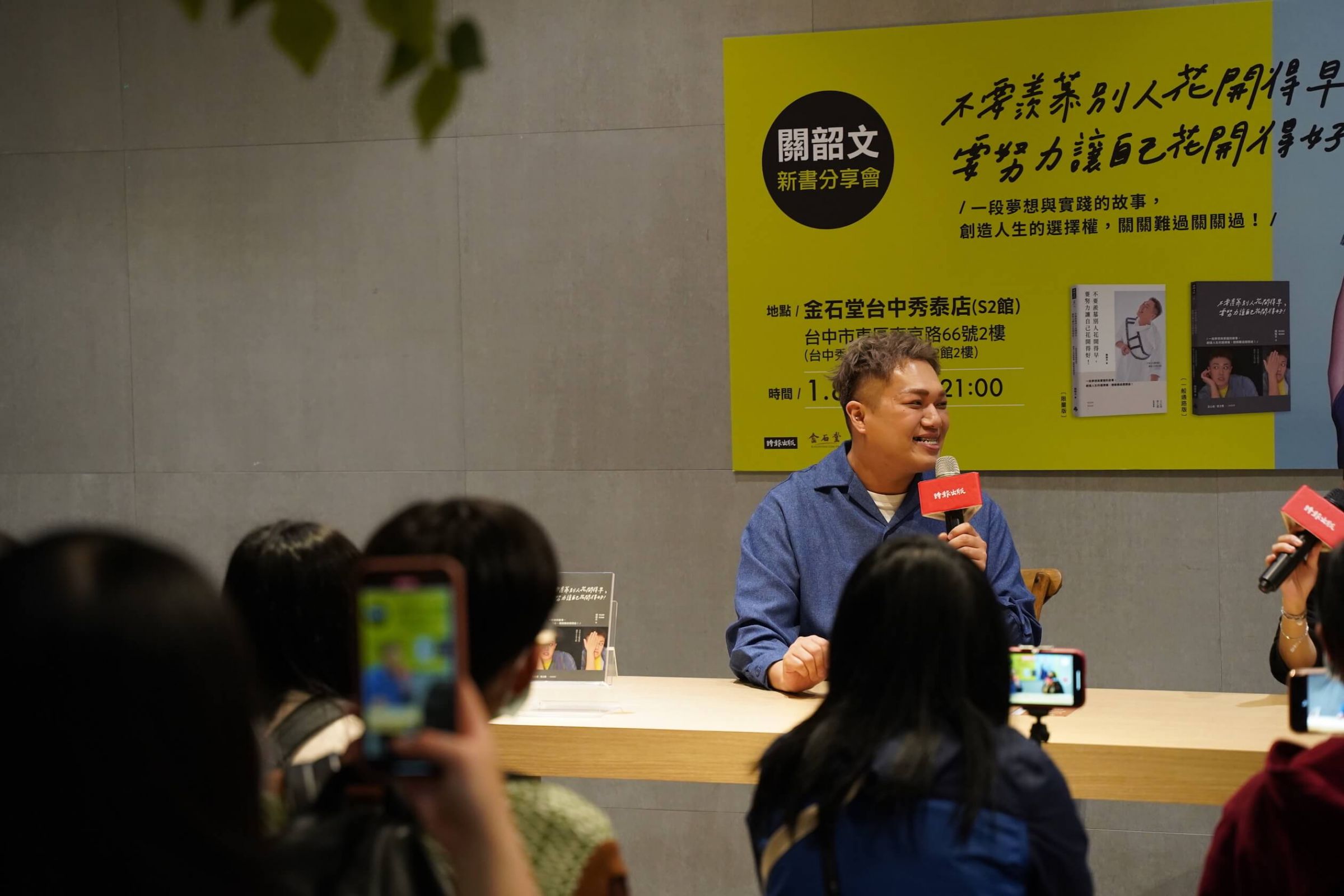 關韶文前陣子為了新書舉辦台中、台北簽書會,他坦言心情十分緊張,雖然過去主持過不下百場大型記者會、也曾與焦凡凡舉辦過簽唱會,但畢竟這次是個人簽書會,台中場前還失眠了一整晚,上場前還躲在一旁偷看有沒有人來、台北場更是近鄉情怯。當然,他的擔心是多餘的,不管是台中或台北場都有上百位書迷到場支持,除了台中場有泰辣義氣現身,台北場連爸爸家人們都到場力挺,各界好友焦凡凡、Ivy Chao、Apple、G蛋布丁、賴珮如、李科穎等都不缺席,有趣的是,焦凡凡更帶錯關韶文簽給婁峻碩的書來,書一打開猛然驚見「婁婁寶貝」四個大字,讓焦凡凡作勢吃味說:「婁婁寶貝?打開想說誰啊?誰是你寶貝,說清楚!我現在才知道,你為什麼偷告白。」讓全場哄堂大笑。