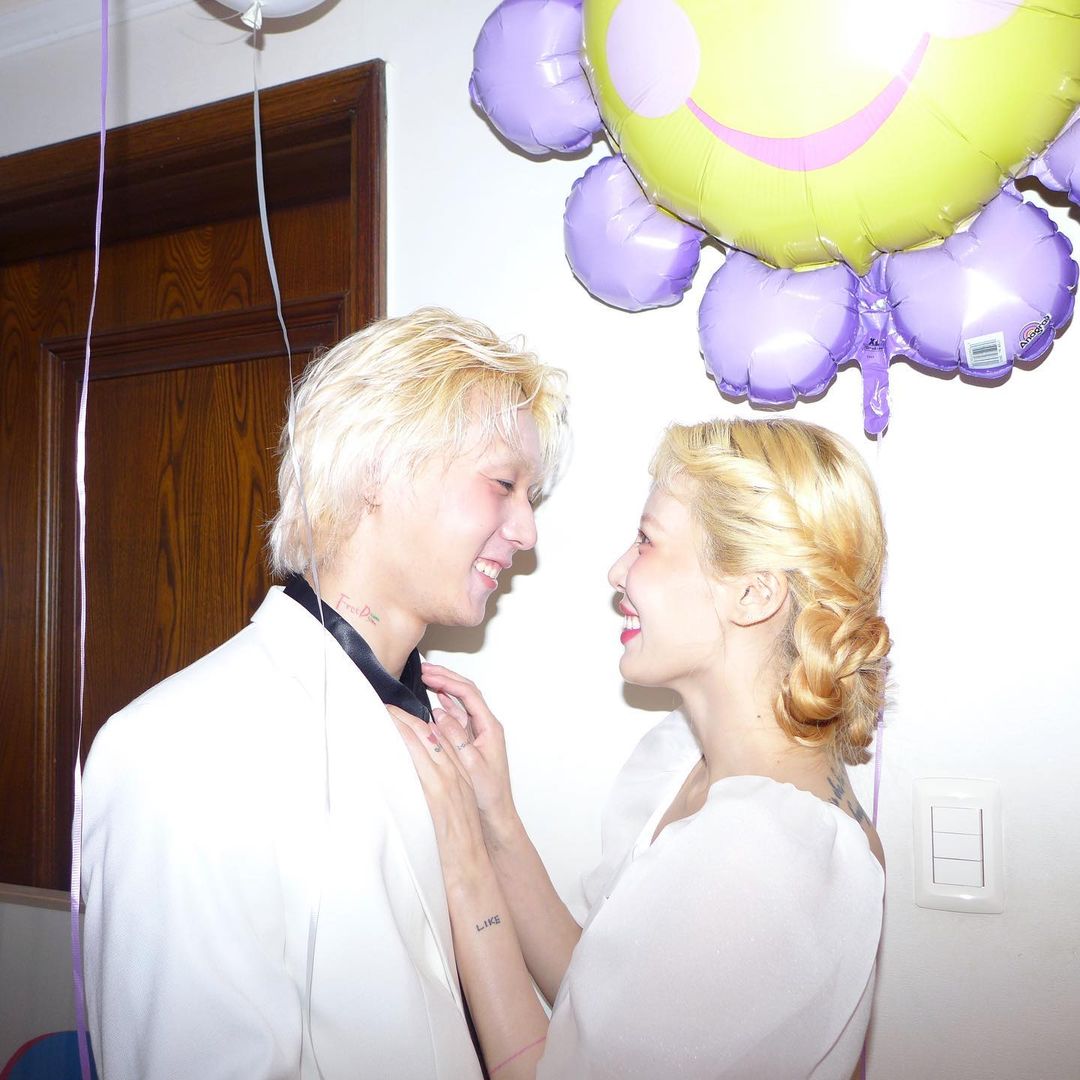 Dawn(金曉鐘)3日時在Instagram曬出一段影片,畫面中則是一隻左手,無名指上戴著一枚鑲有彩色珠寶的婚戒,接著另一隻較大的手也出現在鏡頭前,無名指也帶著同款戒指,輕輕地扣住原先的手,而她也在一旁貼文寫下:「MARRY ME(嫁給我)」,限時動態也分享影片並標註女友泫雅。沒想到女友事後也曬出該影片,並且回覆:「當然是Yes」,正式宣布兩人6年的戀情開花結果,即將組入人生的下個階段。