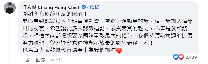 對此,紅隊領隊江宏傑也在留言區緩頰,「希望大家鼓勵代替謾罵來為我們加油!」只不過仍有許多粉絲對於製作單位的聲明不買帳,「有說等於沒說,事實就是錢抗議馬上就受理,小傑沒人理」、「這樣說的話,那紅藍兩隊的選手們也不用苦練啦~因為他(她)們也不是職業選手(運動員)」、「這個聲明感覺越描越黑……」
