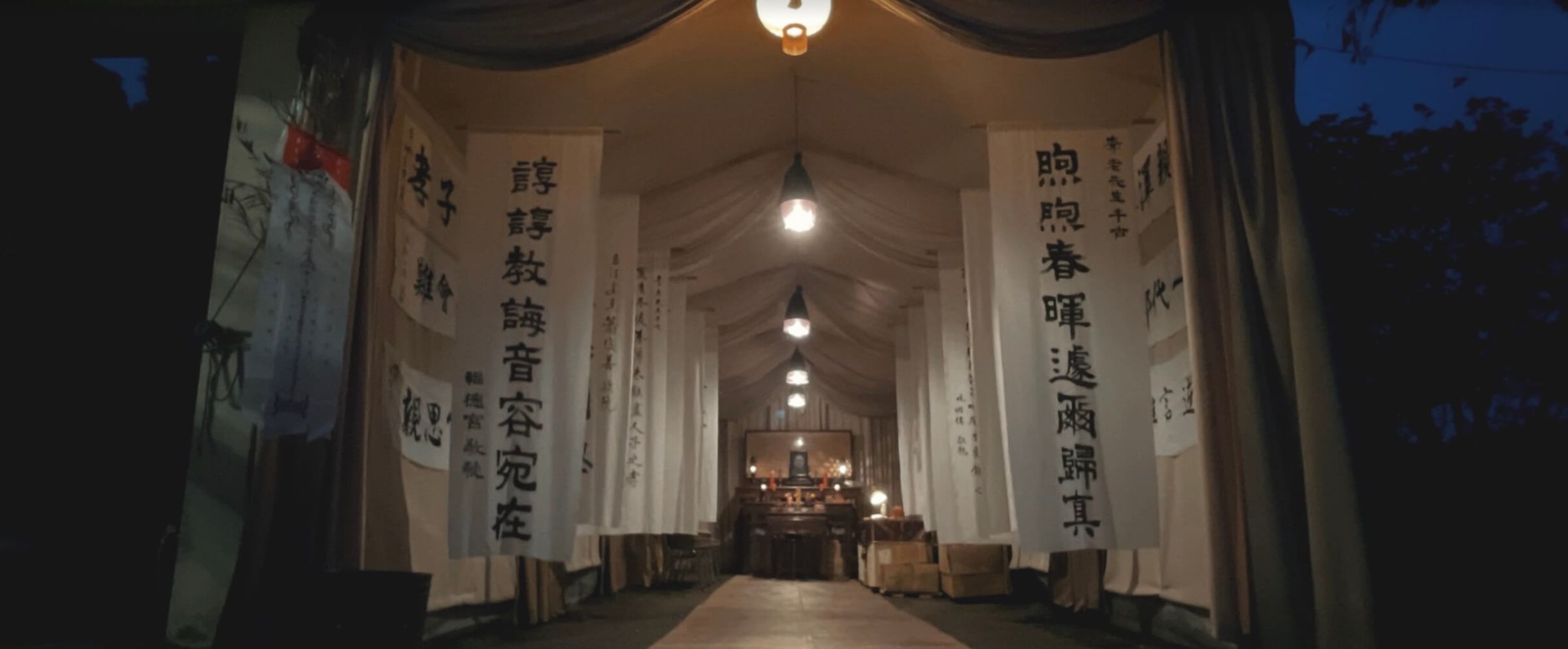 《頭七》全白靈堂中掛滿輓聯,死氣沈沈的氣氛讓整個空間充滿壓迫感,加上一點風吹動,營造出隨時有人站在飄動的輓聯後面的錯覺,高宇蓁表示,雖然拍攝時動不動就上百人在現場,「可是靈堂逼真到讓人『背脊發涼』,明明就漂亮又全白設計,但有種詭異感。」陳以文也表示,原本覺得老宅本身並不嚇人,「但是靈堂搭的很像真的,非常莊嚴的感覺。」