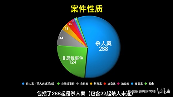 在眾多的案件當中,最常發生案件的地區就是柯南所住的東京都米花市,而天兵警察「山村操」所在的群馬縣則列居第二,如果以更精準的地點來看,別墅及交通工具名列前兩名。死亡人數的部分,撇除化學工廠及醫院的爆炸案,28年間總共死了541人,其中死亡的男性就高達326人,年齡以20至29歲佔比最高。該名網紅還提到他認為最扯的殺人方式是「用銳利的指甲劃破脖子」、「用裝滿硬幣的襪子當鈍器」以及「把扭蛋放進襪子把人打死」,讓人不禁懷疑人真的有這麼脆弱嗎?