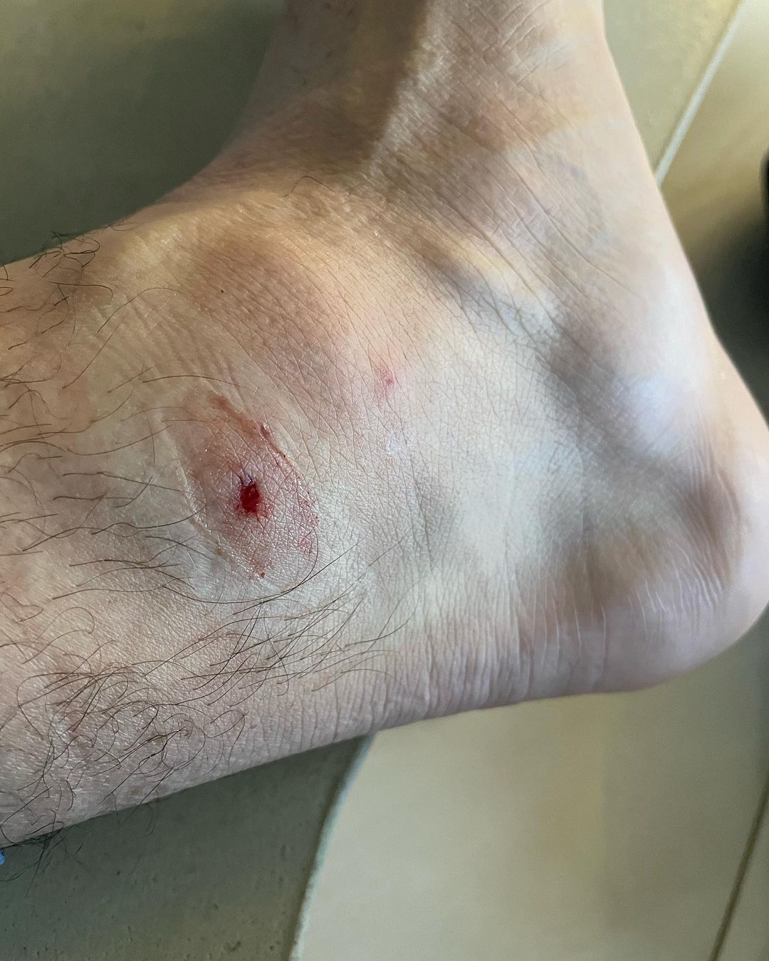 賀軍翔28日在IG上曬出一張腳踝受傷的照片並寫道,「你們知道被釘鞋敲到腳踝骨頭,插進肉裡是什麼感覺嗎?一個字,超級痛!」,加上腳踝附近微血管比較多,傷口似乎很難止血。從照片中可以看到,傷口凹了一個洞,雖然傷口不大但卻不斷冒出血來,周圍還有一些破皮跟刮痕,雖然看起來已經有經過消毒擦藥,但還是讓許多粉絲相當心疼。
