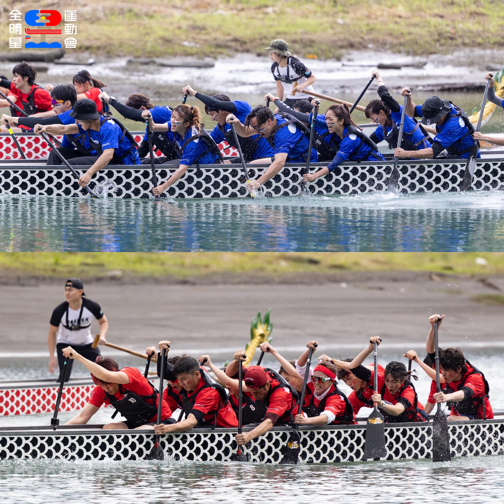 《全明星3》最新一集賽事來到了萬眾矚目的龍舟比賽,在過去兩季中,這個項目都是由紅隊拿下勝利,所以第三季的紅隊學弟妹們,也有著一定程度的壓力!在第一回合龍舟賽中,紅隊以59秒22領先藍隊的1分01秒19,這是三季以來首度出現一分鐘以內的成績,而且紅、藍兩隊都突破前兩季的大會紀錄,雖然第二回合藍隊力挽狂瀾,奪下勝利,但最後成績加總,紅隊還是以1秒左右的差距險勝,讓觀眾們看了都超級無敵熱血!