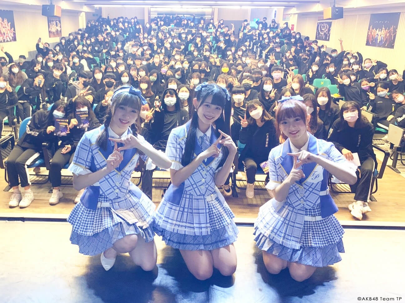 睽違近三年,第三期招募活動也正熱烈開放報名中,為了徵招優秀學妹,「學姊」們也勤跑校園舉辦講唱會宣傳,上週五(3/18)則由代表成員語晴、逸嘉及麻由出席,並分享加入AKB48 Team TP的幕後故事。成員們一登場即受到學生們的熱情歡迎,尖叫聲更此起彼落,讓她們忍不住笑說到處都充滿著青春熱血的氣息!而她們首先誠意十足的一連帶來多首唱跳,緊接著則由三位成員現身說法分別聊加入AKB48 Team TP的契機。