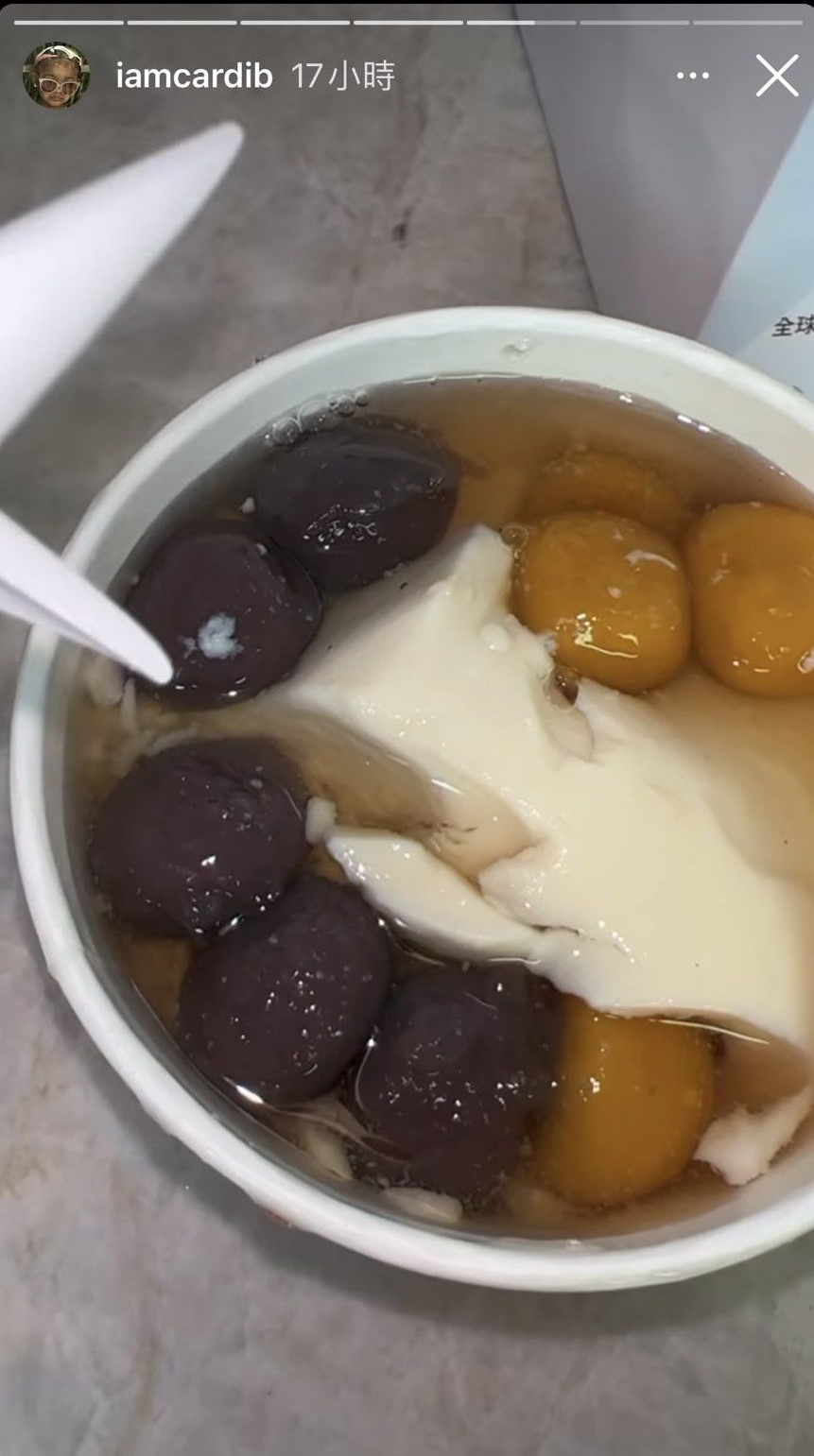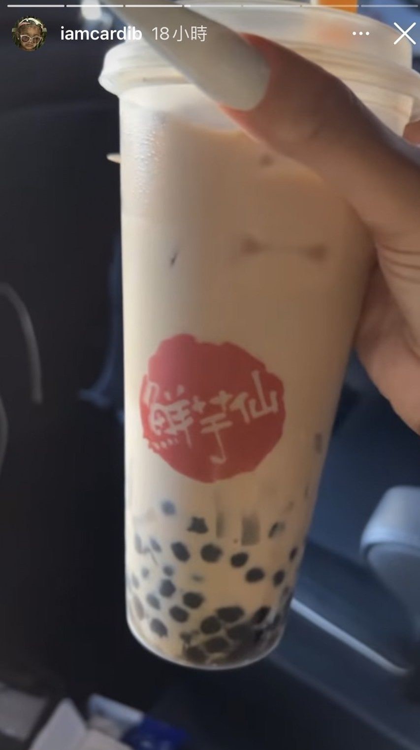 Cardi B在23日透過Instagram發了多則限時動態,其中一則是她曬出手中握著一杯有著「鮮芋仙」包裝的珍珠奶茶以及一碗芋圓豆花!而她當時似乎正在車上大口喝珍珠奶茶跟吃豆花,喝了之後整個喜悅到忍不住開心直呼,「如果你在洛杉磯看到這家珍奶,超推!包裝很可愛,我真的愛死了!!!」