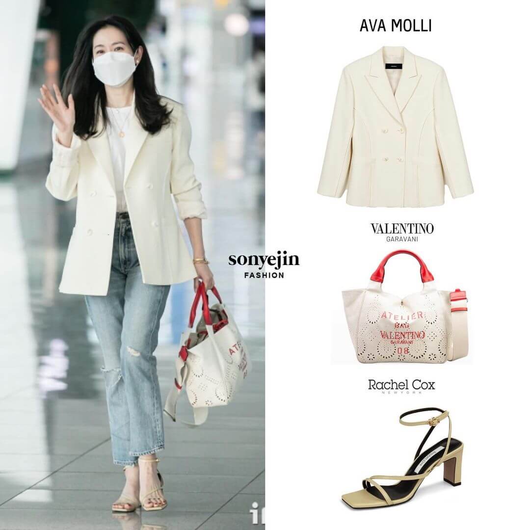 除了名牌包,孫藝真身上的「行頭」價格也一一被韓國媒體揭露,像她身上所穿的象牙色外套來自品牌AVA MOLLI,要價46萬韓元(約新台幣1萬元),鞋子則是來自品牌Rachel Cox,要價14萬韓元(約新台幣3千3百元),演員朴信惠、女團Red Velvet的Yeri也都曾穿著在公開場合亮相過,而孫藝真配戴的英國品牌ALIGHIERI項鍊則要37萬韓元(約新台幣8千7百元)。