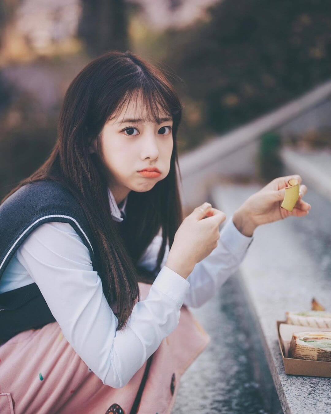 女團Lovelyz於2014年出道,並在去年11月宣布解散,目前劉智愛轉換身分改當演員,她最近也在SNS貼出Gyaru peace手勢的照片,也引發不少關注,網友甚至還驚嘆智愛的頭「似乎比手來得小」。