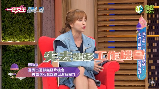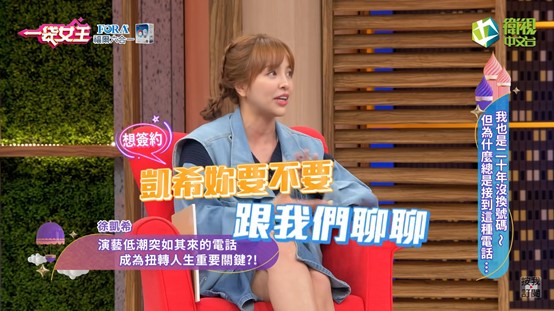 徐凱希在《一代女王》中分享有關電話的大小事,像是過去曾因為手機號碼外流而被騷擾,不過其中一通電話卻改變了她的人生!她透露,一開始是以歌手的身分出道,一心只想著要唱歌,所以拒絕了很多工作機會,原以為簽到大公司能有光明的未來,結果還沒發片就離開了公司,後來她也嘗試過演戲、舞台劇、組女團,可惜演藝事業仍不見起色,她坦言,「大概三、四年前,我一度想放棄了」,原因是年近三十卻始終沒有一番成就,不希望讓父母繼續擔心。
