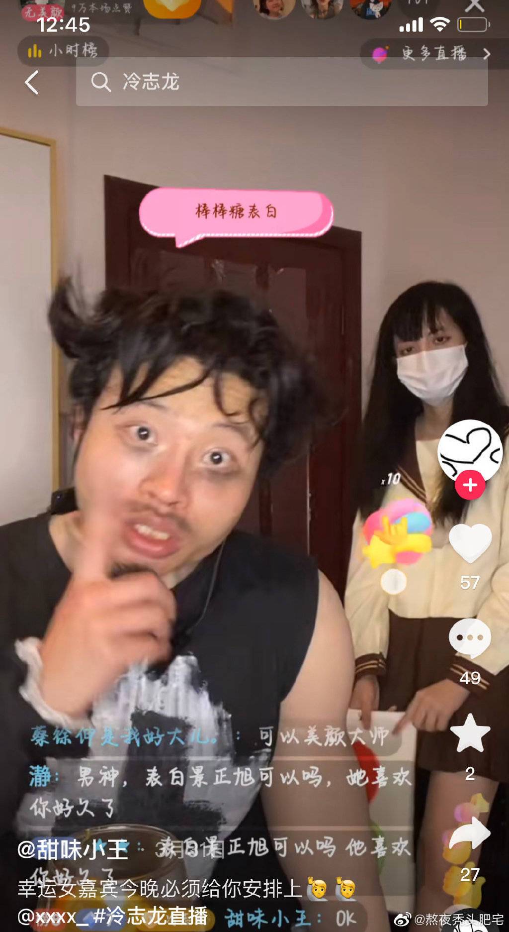 冷志龍今年2月才開始經營抖音帳號,儘管他幾乎都戴著口罩不曾露面,一雙電眼還是電暈不少女性粉絲,加上一身精壯肌肉,再街頭勁歌熱舞更是帥翻一票網友,才短短2個月的時間就狂吸將近7萬名粉絲,後期他也大方脫下口罩,露出精緻五官及白皙瓜子臉,口罩內側更寫著「I Love You」,瞬間擄獲萬千少女心。