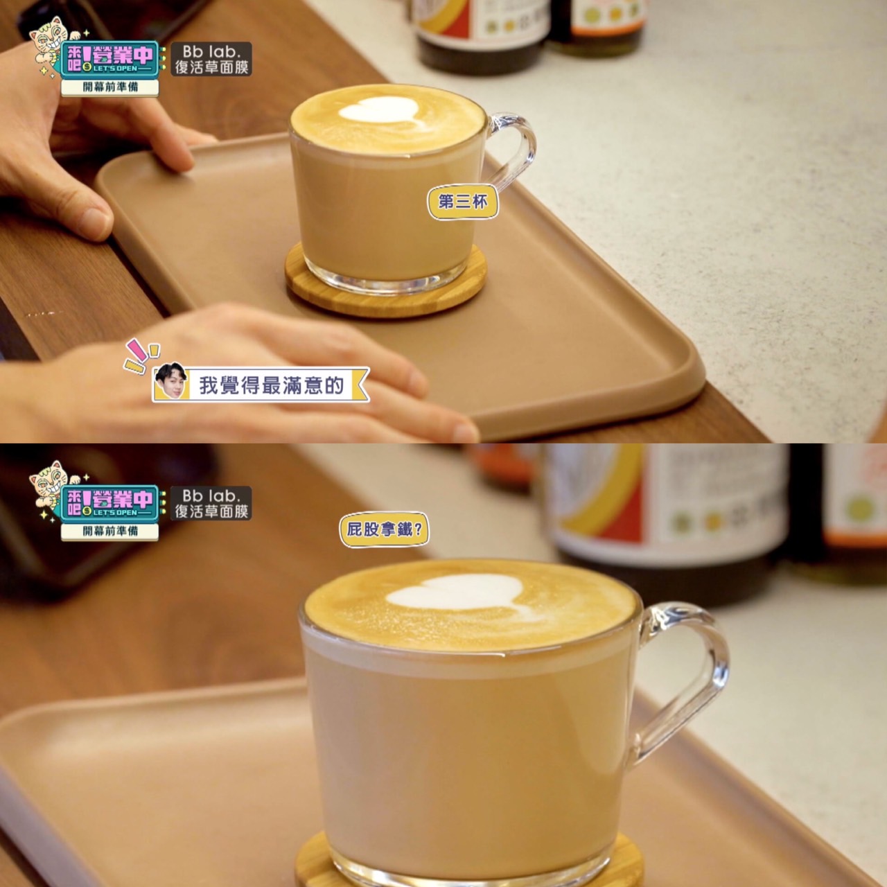 在結束了一整天的實戰之後,一行人終於能夠坐下來好好飽餐一頓,同時檢討營運時的問題點,其中的重頭戲就是工讀生的考核環節,鬼鬼(吳映潔)雖然出餐期間稍微有些慌張,但最後仍完美達標,而顏佑庭則在營運期間總共賣出了32杯拿鐵,扣除在上菜時主動向客人提及「可以拍照」的部分外,共有10位客人拍下拉花留念,遠遠超過當時製作單位設下的目標,以高標準順利完成考核!