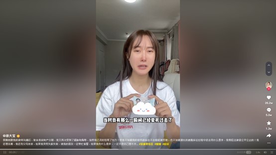 徐大寶日前在抖音上揭露老公家暴的惡行,她表示近半年來遭到對方爆打四次,理由是懷疑她出軌、不尊重朋友及行為不檢點等,甚至在施暴過程還會刻意避開監視器,避免留下關鍵證據。更扯的是,有次對方還掐著徐大寶的脖子,失控往臉上爆打,甚至用枕頭悶住她的臉並無情表示:「忍一忍,幾分鐘就好(死)了!」還要她拍下影片留遺言給媽媽,她聲淚俱下表示:「我現在每天都做惡夢,每次醒來都痛苦到不能呼吸」,並留下不自殺聲明。