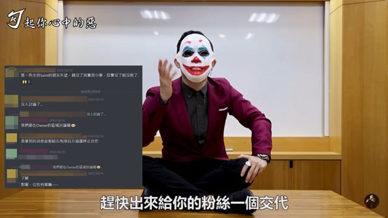 另外,聖結石大方公布自己在本次合作獲利約40至50萬台幣,「這算是一個正常的商業合作預算,並非謀取暴利」,認為對方在社群及行銷雖然做得不夠好,但開發能力的確不錯,並表明現在雙方已經停止合作,但他還是有看到對方有在更新公告、改善問題,認為「沒有割韭菜的跡象」。至於被指控迅速切割,聖結石澄清,「自己本來就是以KOL的身分合作,造成部分觀眾誤解,我在這邊真誠致歉」,也會對自己的疏失負責。