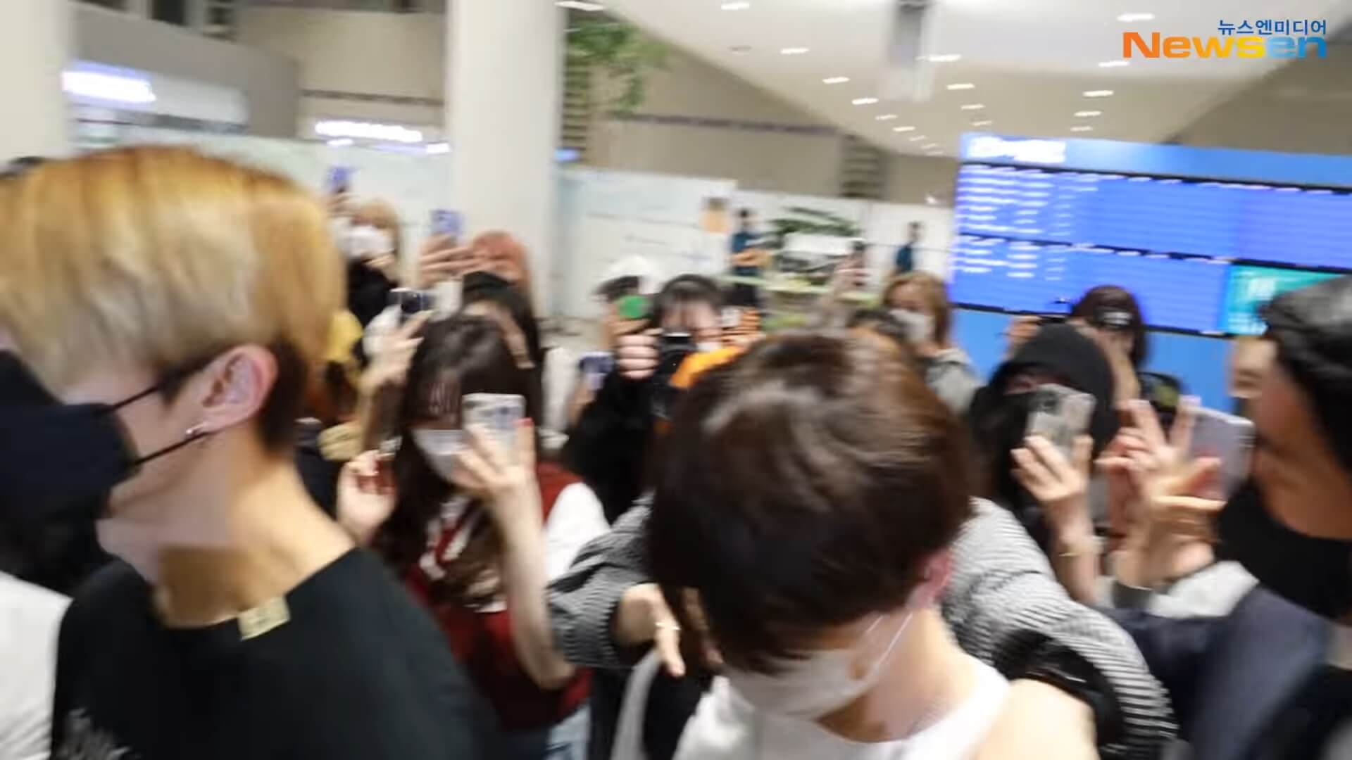 人氣男團SEVENTEEN近期在日本舉行粉絲見面會,而團體在9日返回韓國抵達仁川機場,現場除了有大批媒體守候外,也因為韓國取消了社交距離等相關規定,不少粉絲都跑到機場替心愛的偶像接機!當SEVENTEEN成員們一進到入境大廳起,媒體、站姐們的相機燈光就開始閃個不停,走出大門的過程更是「寸步難行」,被熱情的粉絲們團團包圍!