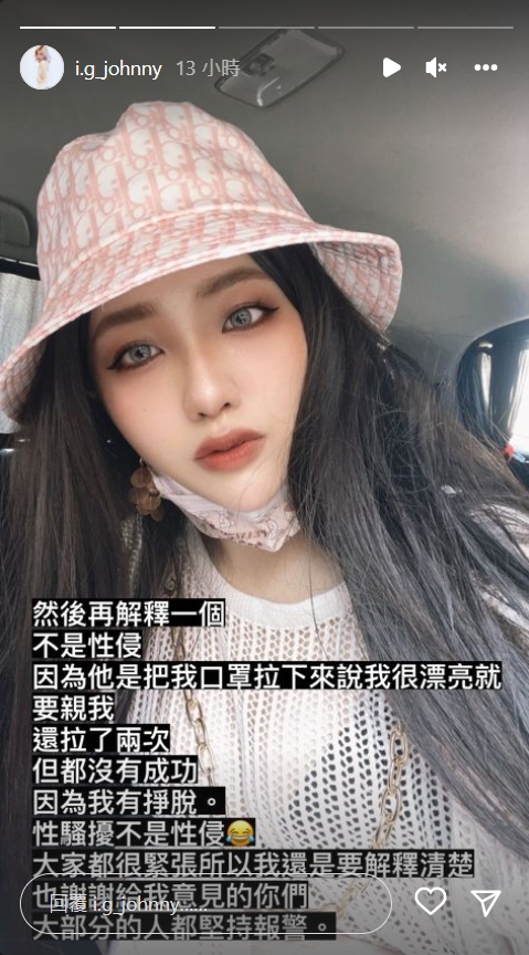 最後,御姐強尼也表示,收到了許多人提供的意見,大部分的人都認為應該要堅持報警,維護自身權益,只不過也有人誤以為是遭到「性侵」,她強調對方沒有得逞,因此只屬於「性騷擾」的程度,也謝謝大家的關心!