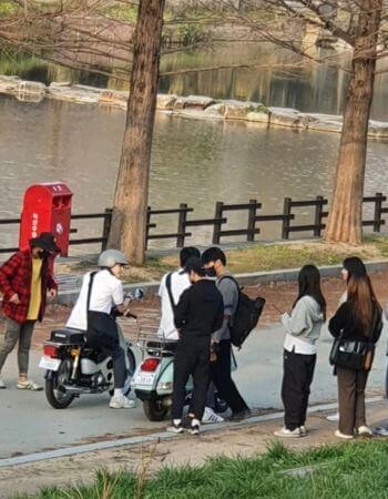 事實上,《在你的時間裡》的背景設定在1998年與2023年之間,這部劇從3月份正式開拍後,便陸續有片場照在網路上曝光,有趣的是,除了講究背景時間之外,似乎還特別還原「台灣味」,除了有復古巴士之外,還有安孝燮和姜勛騎著摩托車、頭戴安全帽的照片,跟《想見你》十分相似,讓台灣網友看了都忍不住暴動!