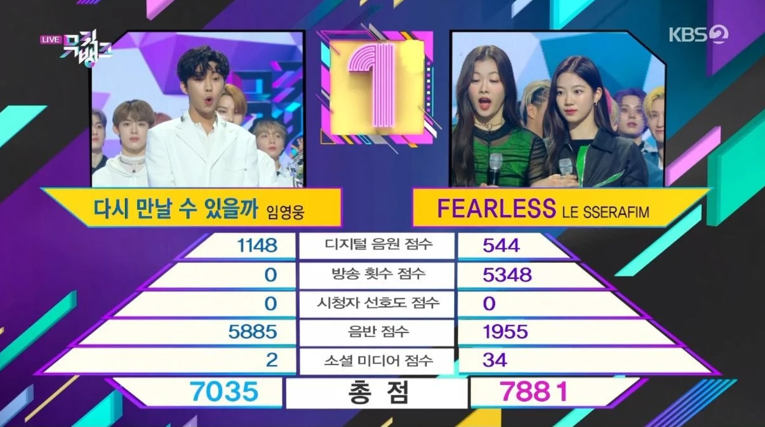 《音樂銀行》的計分方式是由數位音源、放送次數、觀眾喜愛度、銷量、社群媒體組成,而林英雄的專輯銷量在三天內就突破百萬張,音源也一直穩居冠軍寶座,因此兩項成績都遠遠超過LE SSERAFIM,但怎料放送次數卻是「0分」,最終由LE SSERAFIM奪下一位,無論是林英雄還是LE SSERAFIM對此結果都感到相當驚訝,許多人更是難以接受,紛紛湧入節目的觀眾留言區要求公開計分方式。