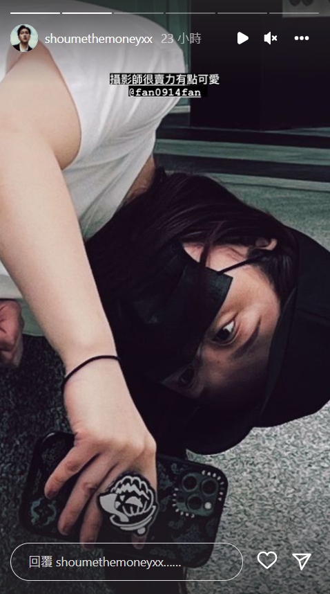 接著,婁峻碩又曬出一張照片給了解答,原來是焦凡凡為了幫他拍下角度最好的照片,整個人已經趴在地板上,而且神情還相當真摯,努力的模樣讓他忍不住笑了出來並表示:「攝影師很賣力,有點可愛!」最後還標記了凡凡的帳號,好感情讓人看了都超羨慕!