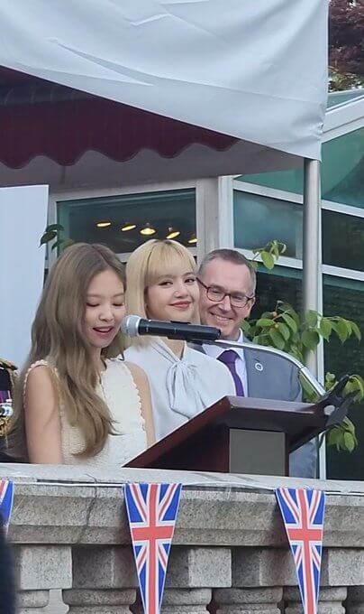 女團BLACKPINK在26日受邀出席英國駐首爾大使館的活動,慶祝女王伊莉莎白二世登基70週年的「白金禧年」,並為女王慶生!雖然Jennie近期傳出緋聞,但她似乎並沒有因此受到影響,不僅面帶微笑,還以一襲白色香奈兒連身裙現身亮相,並且還代表致祝酒詞!