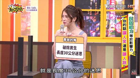 另外,許藍方表示有一次私下詢問鳳梨關於「19.5不含頭」的真相,結果對方才表示:「其實有含頭」!接著,她提到很多男生都會從根部或性器官下面開始量長度,但正確測量方式其實是「從肚子量」,鳳梨聽聞後表示會回家重量,而她也直言:「代表他根本沒有那麼長!」真性情的發言笑翻在場所有來賓。