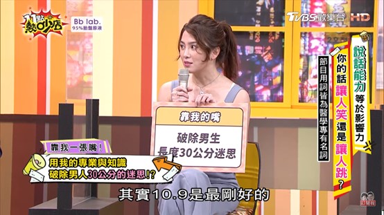 許藍方認為下體10公分的好處在於從事性行為時,能夠方便與另一伴有肌膚接觸,過長的人反而會導致兩人的身體之間有距離,並直言:「很長的也沒有這麼硬」,不過沈玉琳則表示男生其實不在意長短,是因為聽了女生的反饋之後才會介意,對此,許藍方則認為長短是建立在「比較之下」,但實際上性行為的「技術」比長度重要許多。