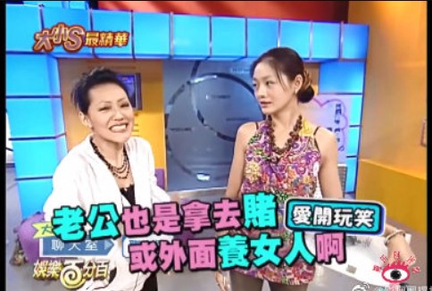 大S曾經在節目《娛樂百分百》中與妹妹討論,當時熱愛買名牌包的她,突然感慨:「你現在不拿錢去買名牌,以後結婚老公也是拿去賭,或者在外面養女人」,當時小S聽到後忍不住吐槽姊姊太消極了,大S接著更直言:「人生就是這樣子,我現在講的話錄下來,十年以後你看我家庭狀況是不是這樣子。」