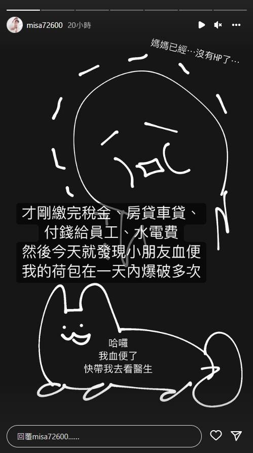 身為貓奴的米砂原本已經養了三隻貓咪,她7日在IG上發文表示,其中兩隻貓咪特別需要照顧,愛挑食又愛亂尿尿,貓砂不是指定的種類就不用,讓她笑稱是「拜金二人組」!而她最近正好剛繳完稅金、房貸、車貸、員工薪水及水電費,荷包已經大失血,不料其中一隻愛貓竟健康出狀況,只好緊急帶去醫院看診,無奈又多了一筆開銷。