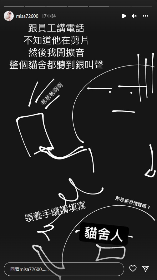 引人注意的是,米砂透露自己在辦理領養手續的時候,剛好在跟員工講電話,因為當下並不曉得對方正在後製A片,所以她就用擴音的方式跟對方溝通,沒想到影片裡的呻吟聲直接被整個貓舍的人聽見,店裡的員工還露出尷尬的表情詢問說,「那是貓發情聲嗎?」尷尬的場面超級爆笑,也讓許多網友們看了都笑出來。