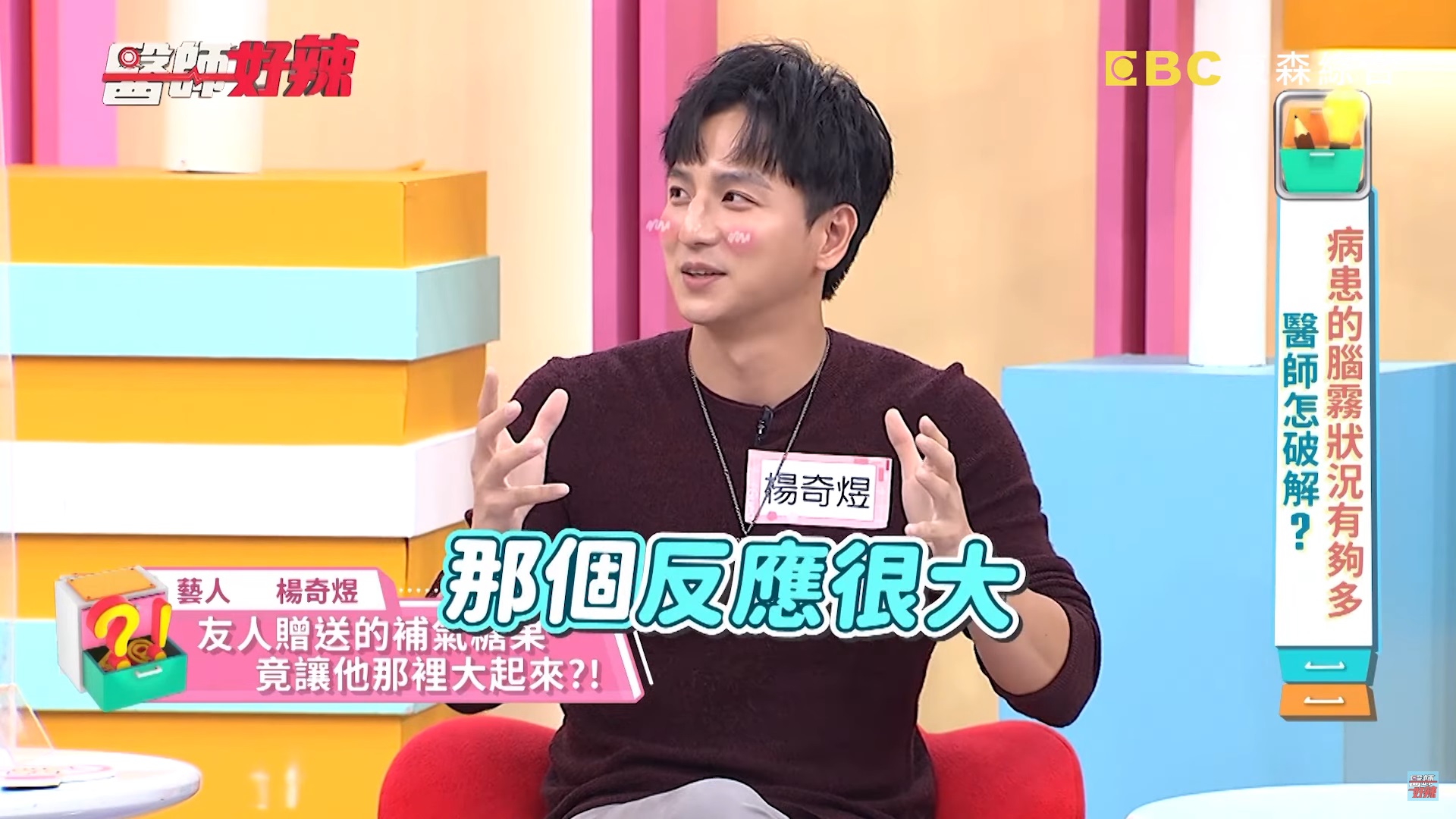 藝人小煜(楊奇煜)出道多年,除了演藝事業之外,副業也經營得相當好,2020年與老婆結婚後,陸續喜迎兩寶,家庭生活過得十分甜蜜!而日前他在節目《醫師好辣》中分享吃了朋友給的「神秘糖果」後,沒想到私密部位竟然「反應很大」,超尷尬的副作用笑翻在場來賓,也掀起網友的熱烈討論!