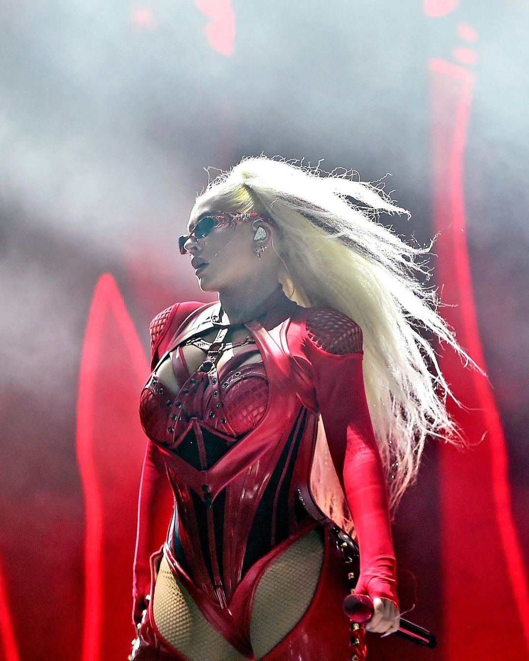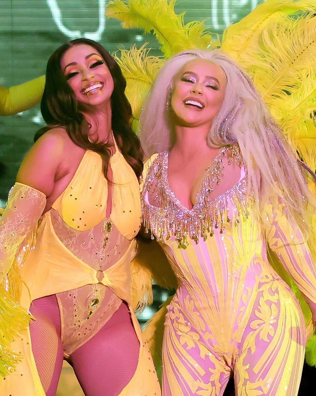 就在克莉絲汀與歌手Kim Petras合唱歌曲〈They Wanna Fuck〉、〈XXX〉時,她換上一身黑皮革高衩連身套裝,套裝外在穿上銀綠色的壯碩肌肉鎧甲,令觀眾眼睛為之一亮的是,她甚至戴上一個亮綠色水鑽「假屌」,這套向LGBTQ團體致敬的裝束一登台,瞬間引起暴動,一邊高歌的克莉絲汀還不時將手游移至胯下,並與Kim Petras一同做出極具挑逗的動作,大膽的造型也在演出結束後,登上了社群熱搜。