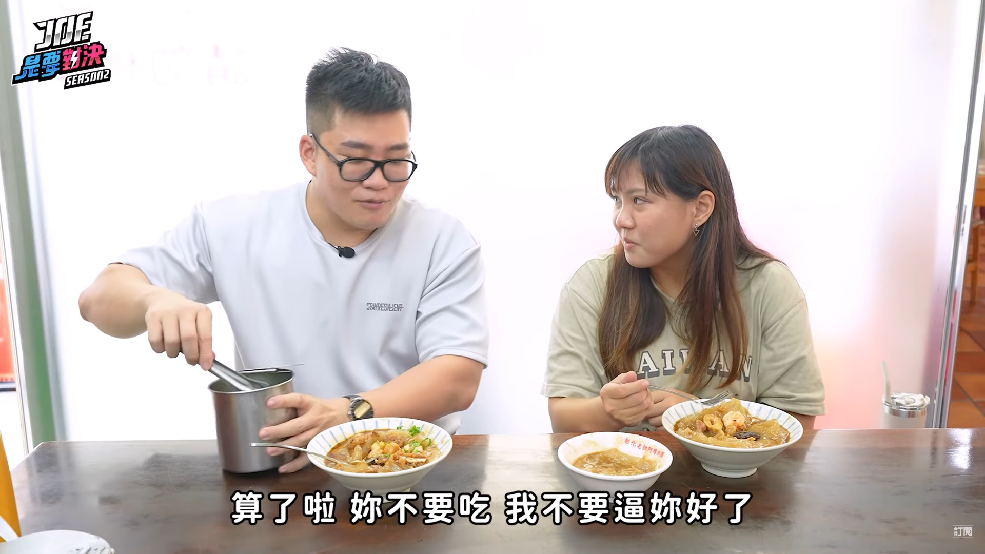經過一陣說服後,魚乾本來已經鼓起勇氣想要嘗試,沒想到Joeman立刻作罷並表示,「算了啦~妳不要吃,我不要逼妳好了,我很怕又有來賓哭出來!」,魚乾聽聞後也立刻大笑。