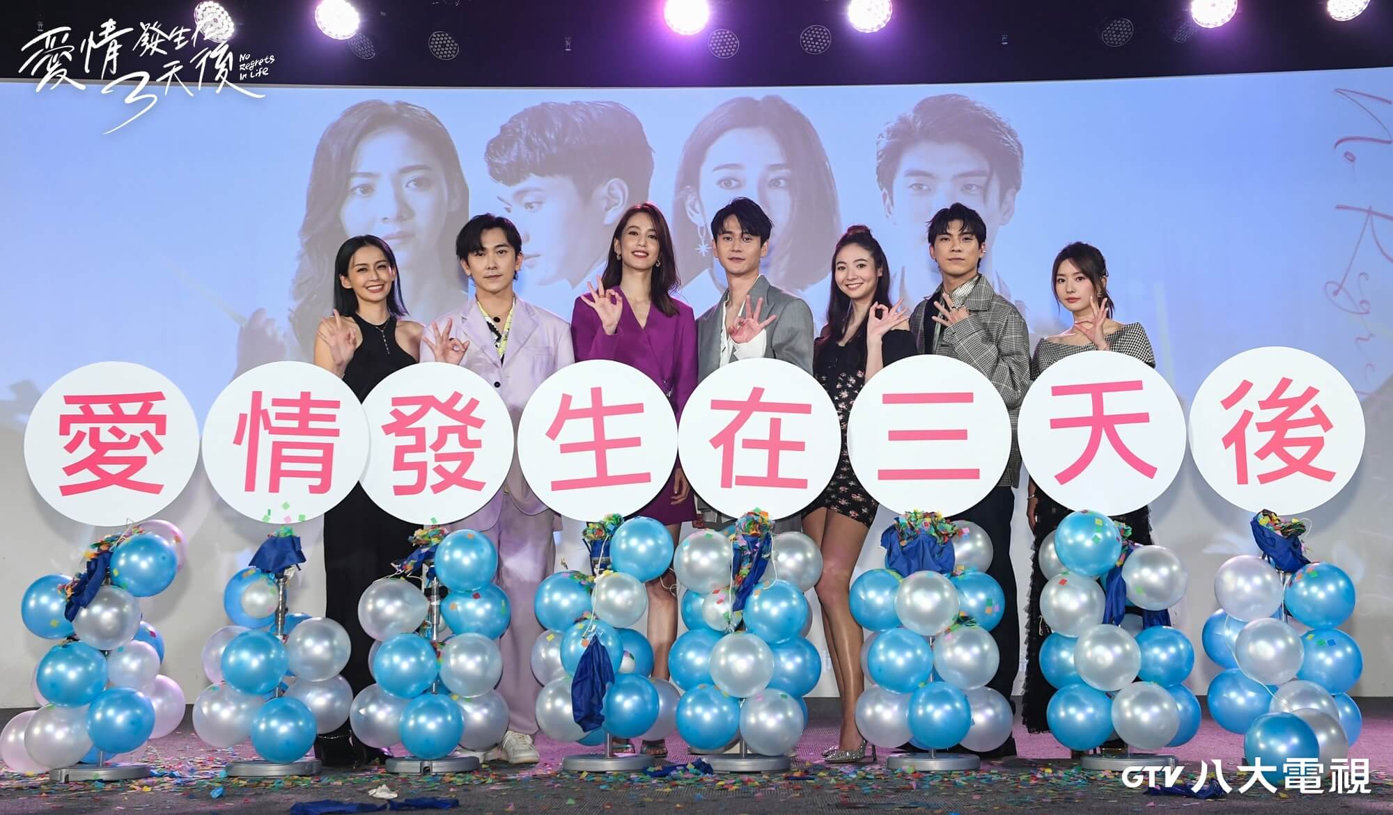 由金鐘導演馮凱執導的八大戲劇台最新作品《愛情發生在三天後》故事探討「需要思考的愛還是愛嗎?」今(15日)舉辦首映記者會,首映儀式中演員們向高空丟學士帽象徵收視一飛沖天。回憶拍攝時期,眾演員大喊「每次拍完都像是靈魂被抽乾」,劉冠廷形容劇中角色要跟大學時曖昧對象陳庭妮與自己的太太謝沛恩刀光劍影,都讓他覺得累,甚至笑舉例自己的婚後生活:「一定不會走向跟劇情一樣的事情。」與陳庭妮第二次合作,劉冠廷搞笑的說:「除了重新認識妮妮不同的一面,戲中被她咬,也算是認識到她的『齒痕』!」,另一方面,飾演劉冠廷太太的謝沛恩則委屈表示自己直到殺青才知道對方會笑,「劇中的我是一個控制狂老婆,我跟冠廷大部分也都是以角色狀態在互動,直到有一次與劇中共組『9個太陽』的同學們對戲,我才知道劉冠廷會笑,也讓我入戲覺得自己真的好可憐。」