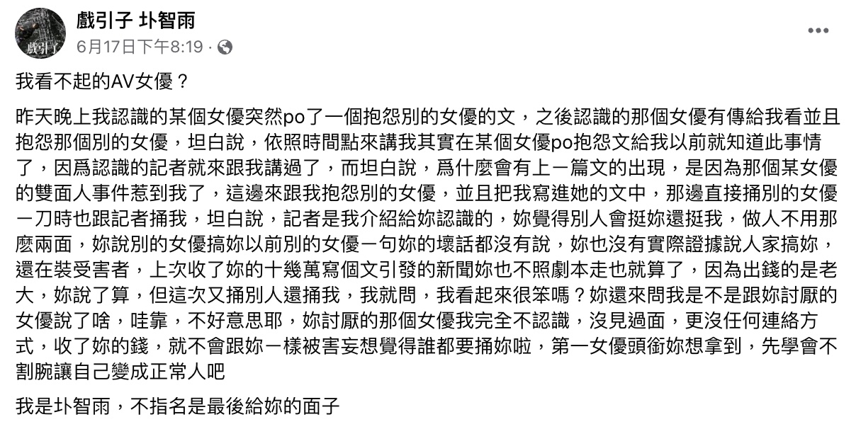 圤智雨遭爆潛規則女優!「肖想你很久」錄音曝光 曬對話截圖:誰主動以身相許?
