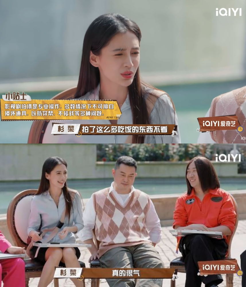 Angelababy透露:「導演說這個東西你就小嘗一口,你不可以把他咬掉了,咬掉了它沒有替補的,那我也沒辦法呀,我只能聽導演的。」似乎是隱忍委屈多年,Angelababy越講越激動,「我這麼多戲,拍了這麼多吃飯的東西不看,就看這個,真的很氣。」