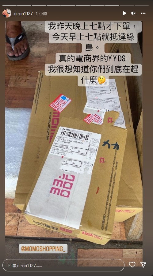 無奈之下,謝忻只好在早上七點,「硬著頭皮打給我老闆,叫他幫我去碼頭領包裹」,她也苦中作樂表示,「大家覺得我會不會被開除?」隨後她便PO出拿到包裹的照片,並表示自己是在前一晚的七點才下訂單,沒想到出貨的速度竟然這麼快,僅僅十二個小時就到離島,讓她相當佩服!
