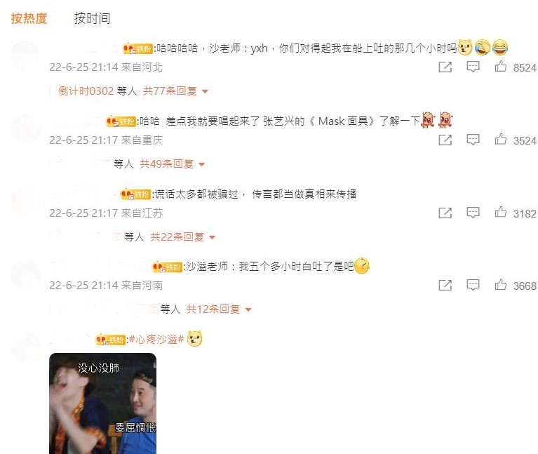 而製作單位也在25日微博上發表回應,「因為假的太多了,所以人們慢慢也開始把真的當成假的。」並對處於風口浪尖的沙溢感到相當抱歉,附上收捕漁獲的GIF動圖,藉此來澄清整個捕魚過程完全沒有偽造,底下許多網友替節目組抱不平,紛紛以張藝興的歌曲來呈現人言可畏,另外,更有人以專業知識科普大眾,「深海魚上岸基本活不成,因為壓力變化,裡面的內臟及血管都爆裂了。」又再掀起討論的熱潮。