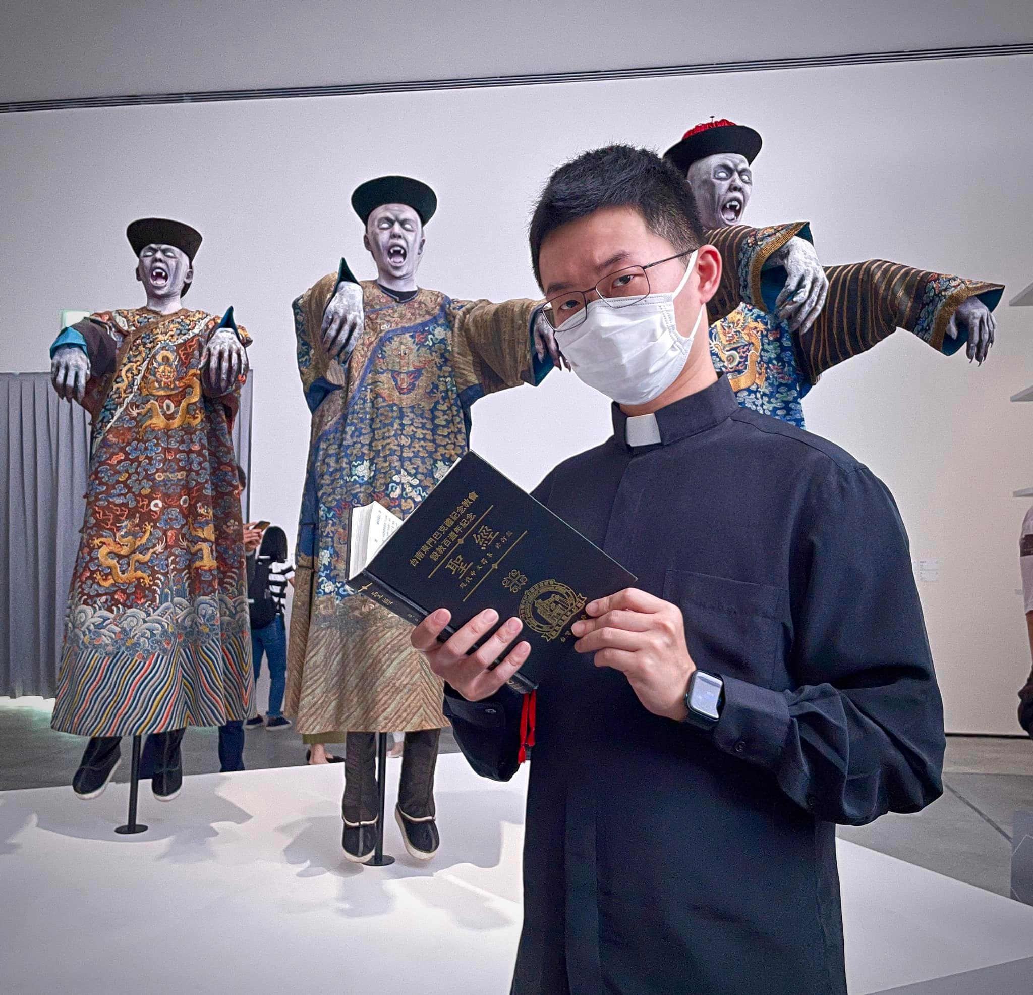 不僅如此,就連YouTuber視網膜也精心打扮成牧師的樣子,搶先參觀展覽,只見他手拿聖經,表情嚴肅的與身後的三尊殭屍合影,真的像是要來「鎮住妖魔鬼怪」的感覺!隨著展覽人潮不斷,展方還一度停止售票,對此,他也發文笑說:「天堂有路你不走,地獄無門偏要入。這是全人類社會的大不幸!」立刻笑翻一票網友,掀起討論!