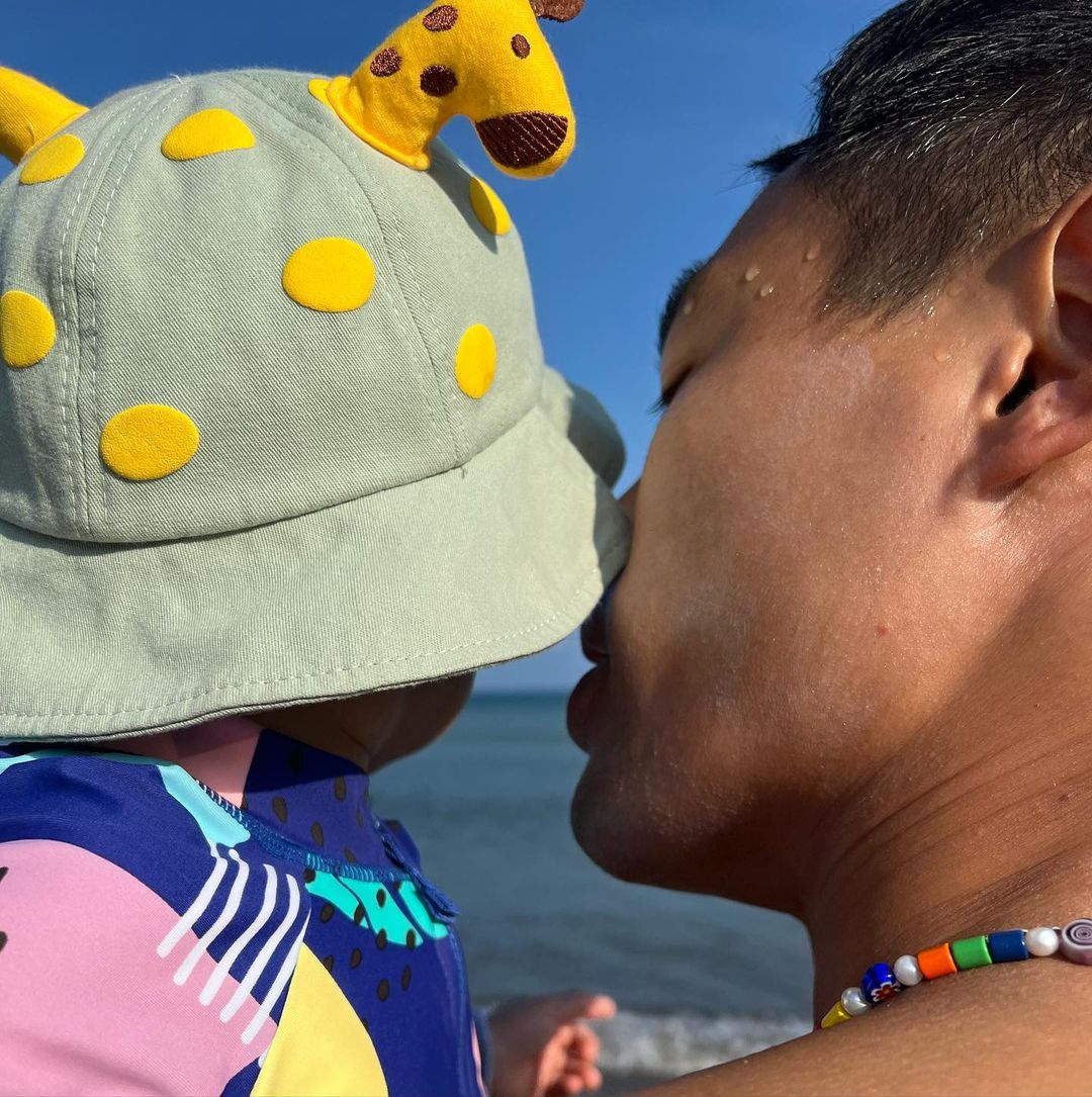 楊祐寧20日開車載著老婆、小孩出外遊玩,他還在IG上開心地曬出帶女兒到海邊踏浪的照片,只見當時天氣非常好,女兒戴著果綠色的圓點漁夫帽,上面還有長頸鹿的角,相當可愛!而她專注的看著遠方的海,楊祐寧則是滿頭大汗並抱著女兒,甚至捨不得把眼神從女兒臉上離開,感覺得出來完全是個女兒傻瓜!