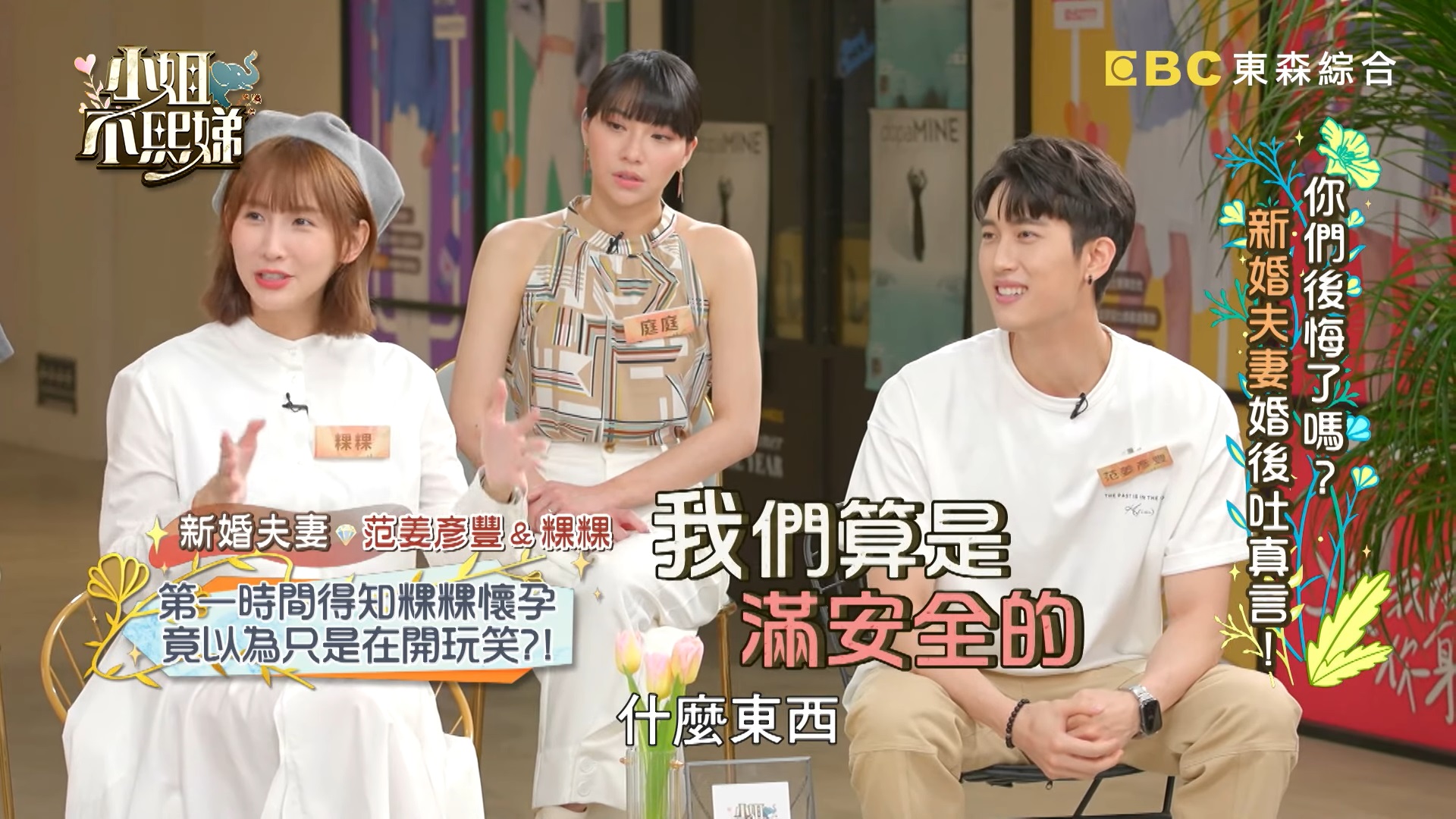 談到得知懷孕時的第一反應,范姜彥豐坦言,「以為是在開玩笑!」粿粿則還原整段事發經過,她透露一開始是因為尾椎非常痛,原以為只是單純的運動受傷,所以打算要去復健科治療,「怎麼想都不會想到是懷孕」。小S則好奇詢問是否有刻意避孕?他們則透露「是有算時間」,所以才不覺得有懷孕的可能性。
