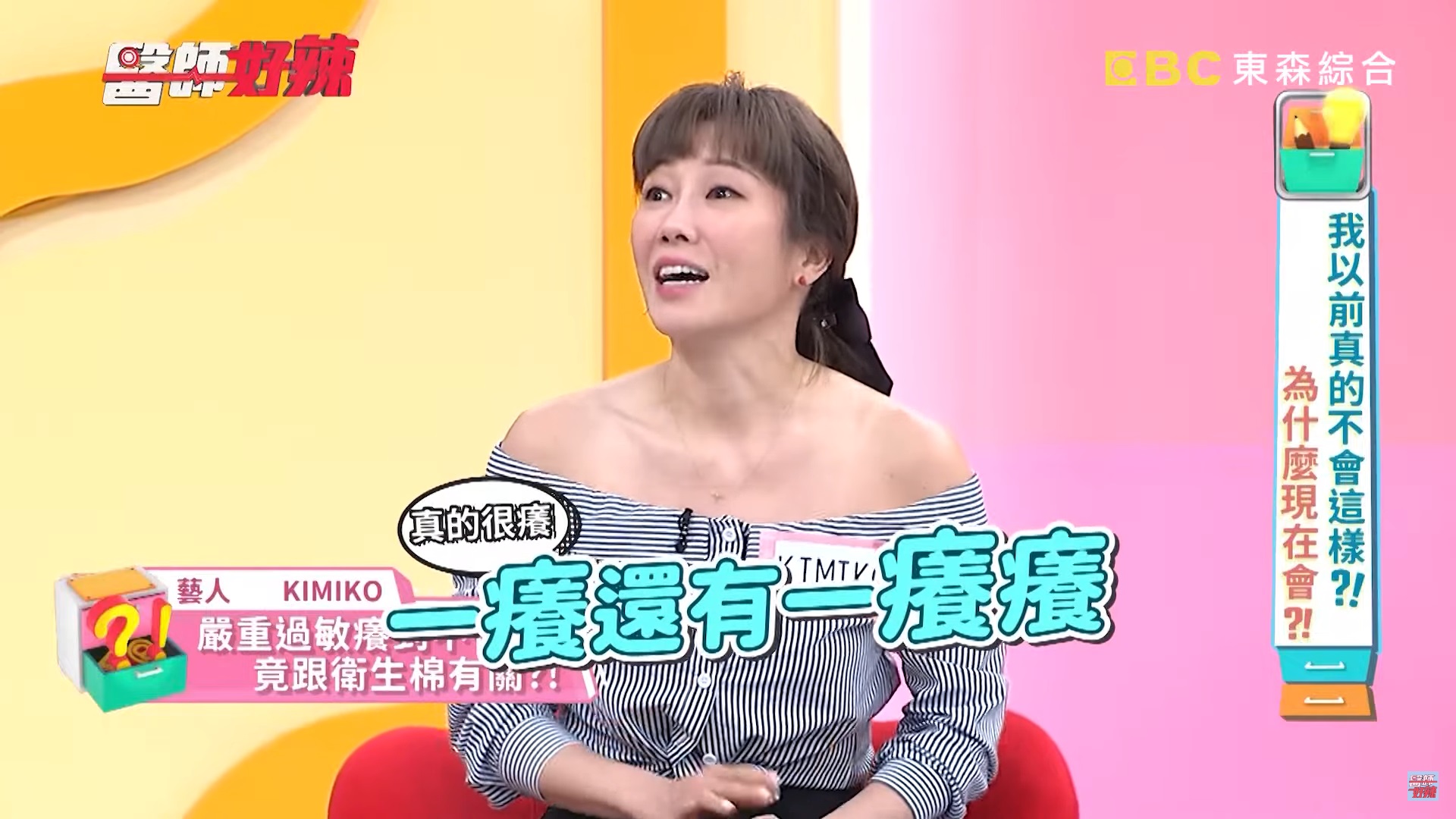 舞蹈老師KIMIKO出道多年,除了工作忙碌之外,還經常透過社群分享生活點滴,像是過去她就因生理期感到「特別癢」而向網友求助,沒想到竟意外發現有不少網友也同樣飽受其苦!而最近她在節目《醫師好辣》還原此事,掀起網友的高度關注與討論。